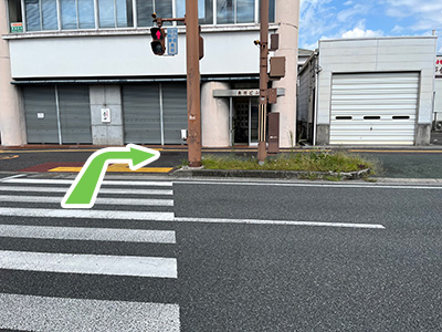 - ②そのまま真っすぐ200mほど進んだ所を右折します。