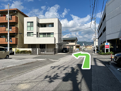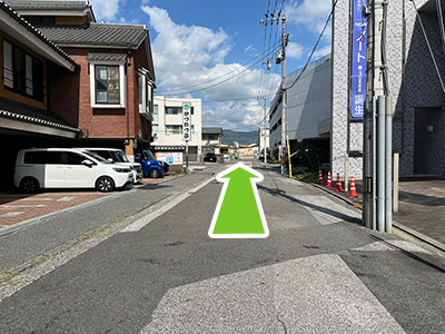 - ④そして、真っすぐ120mほど進むと、つきあたりの右斜め前が「当院」です。